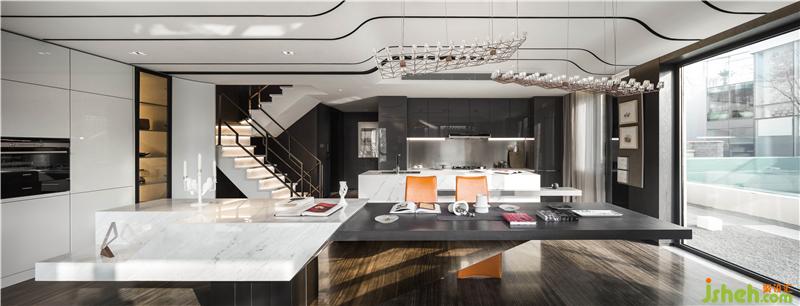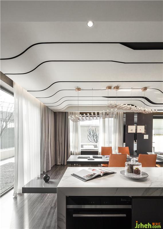 曲线与直线自然流淌,呈现出餐厅干净优雅又前卫时尚的质感。样板房设计
