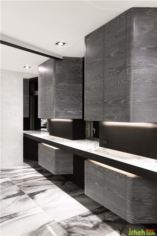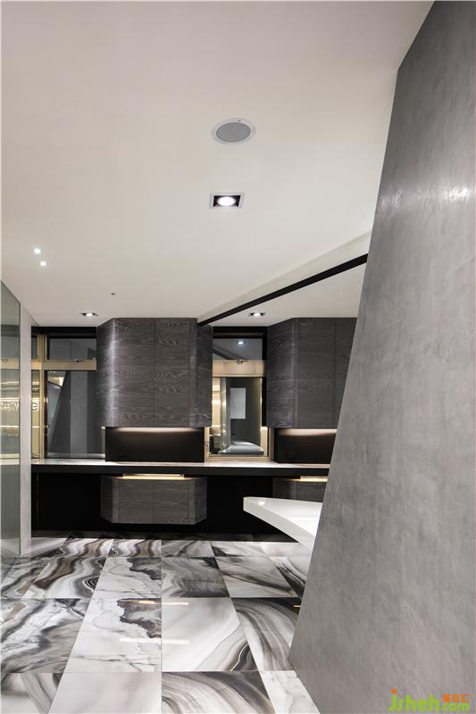 景观自窗外穿透进室内,利用原有建筑柱体进行镜面设计,墙体因阳光的变化投射不一样的光影,晚间,它在光照下产生美妙的漫反射,与外部景观共同塑造空间赞曲。
