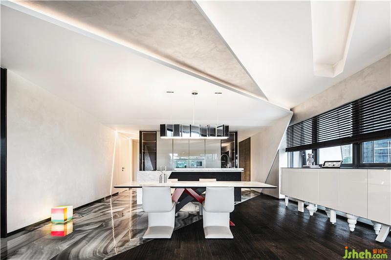 除去浮躁夸张的装饰,肆意游走的曲直线条,深圳豪宅设计量体裁衣式的形构手法,黑与白的游弋,灰与白的融洽,冷酷、精确而优雅,与主人的时尚审美不谋而合。