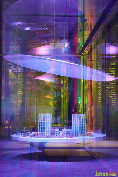 光是空间的魔法,冷暖两种色调交织、赤橙黄绿青蓝紫共舞,如繁华都会的山海流澜,似游走夜幕的灯火霓虹,为极具线条和几何感的空间韵律,延绵出一席流动的视觉盛宴。流溢的光影为空间赋予生命色彩,材质、光感、艺术三者彼此烘托时空记忆。在变幻的光影视界中,空间仿佛在呼吸、起舞,时间秩序被重构,空间界限被打破,场景与情感交织于此融汇,轻奢、灵动亦有质感的情景场域,由此盈散。