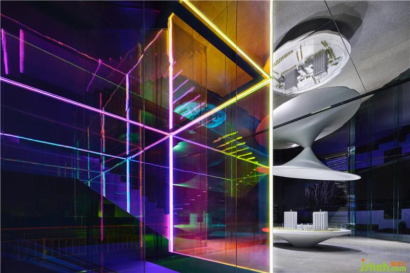 弧线与环线多维并进,和而不同,平行相生,延展空间张力,引导视觉走向,令时空穿越之感呼之欲出。