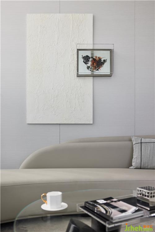 米白色皮质长条沙发临墙而立独处一隅。细腻的流线与圆形石材茶几辉映成趣,一体化剪裁工艺在留白的艺术场域内,游离出独有的美学姿态。带有些许科技感的家居选择,变革性的前卫设计,将充满理性的曲线建构面与感性的精神思维融会贯通。材质与色彩的纯粹性,随着动线渐进演化。