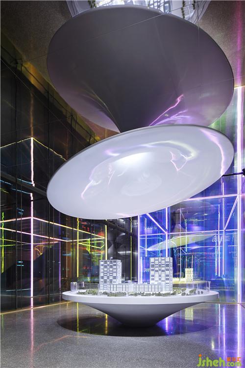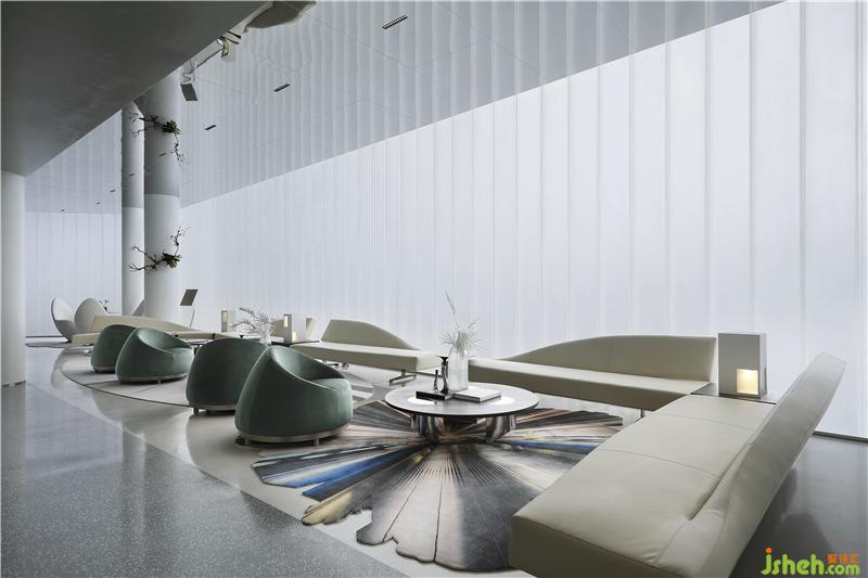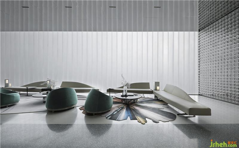 高级灰、乳白交织的主基调内,一抹轻盈的孔雀绿跃入期间,像生命的律动捕捉着城市的脉动。恰到好处的搭配,予以符号式的创意呈现和审慎的象征性表达,丰富了空间的层次感与艺术性,亦唤醒城市人文记忆与活力杭州售楼处设计。