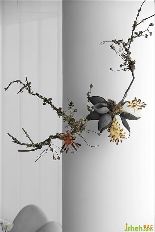 爱马仕御用花艺设计师李霁创作的一组花艺,以季节未来感作为装置架构,与永生的植物、干燥树干镶嵌,利用有机质与无机质的衔接,传递汇聚融生的精神主轴。质与植的组合,恰如树叶和植物的纤维,被游荡的微风合成歌颂造物主的乐弦,每一片叶子都是一个声部,每一次奏响皆是一首颂歌。