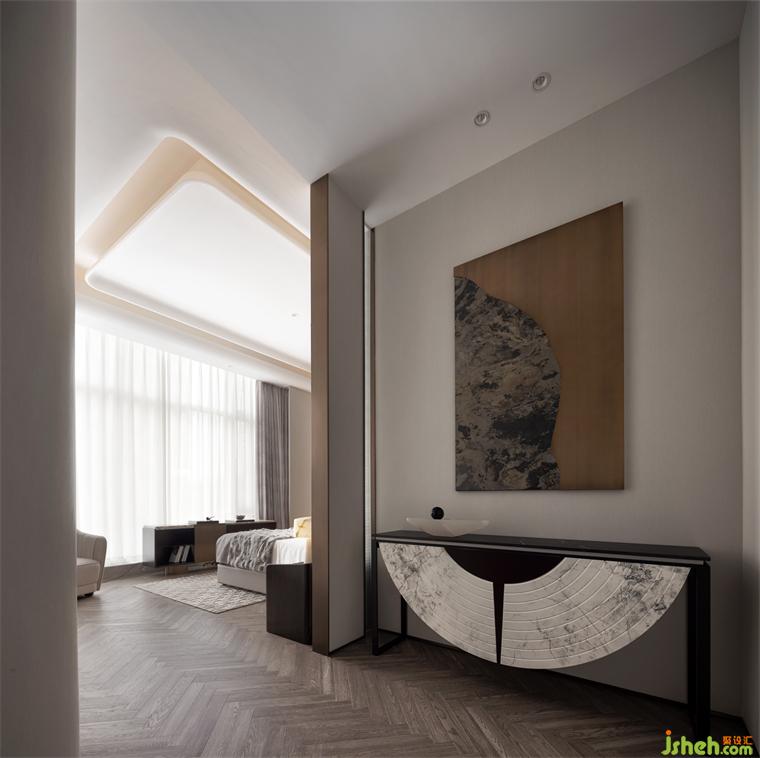 暖调空间与克制的素色陈设,低调地处理着与空间的关系,样板房设计质朴交融的静谧氛围,亦萌生暧昧的情愫,柔化出令人身心放松的私密感,大幅自然光跟随温润的空间情绪流入其间,为空间释放安宁的氛围,传达出温和平静的情绪感受。