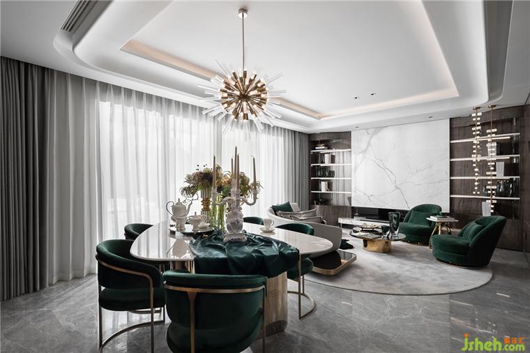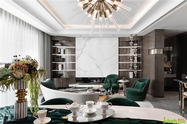 在强调风格、发扬个性的同时,更加重视并极力探索与现代生活的完美结合,样板房设计打造富有现代感的时尚空间。简洁的几何形态中巧妙穿插曲线,诠释传统与现代的平衡之美,达到功能与审美的兼容。