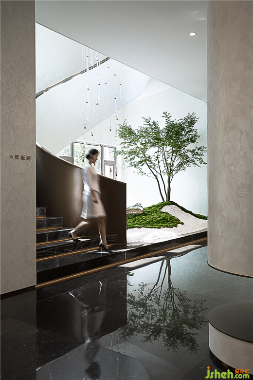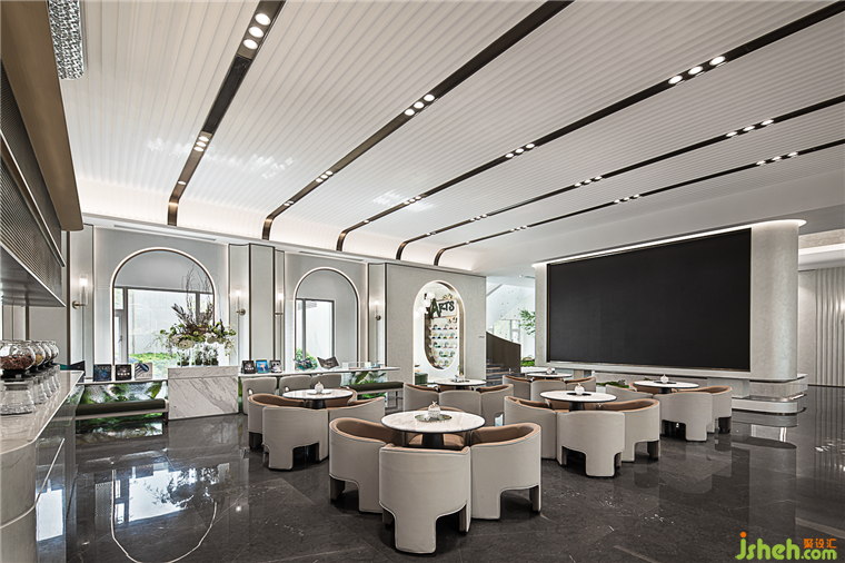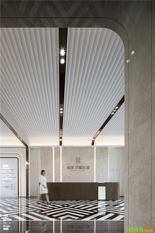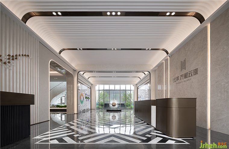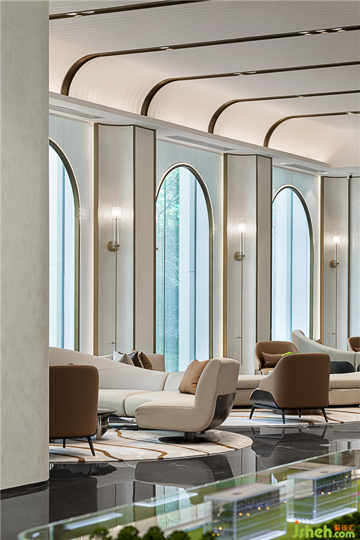 远洋万和云璟设计风格定位“现代都市摩登”,结合“云璟”二字所蕴含的温柔与优雅,营销中心设计引用青岛的“水”文化作为设计语言的提取,在空间中穿梭与游戈。汲取新装饰艺术的曲线设计形态,融入都市烟火,与简洁的当代语汇交织,静淌的线条与自然、文化相牵,延续典雅而细腻的质感。