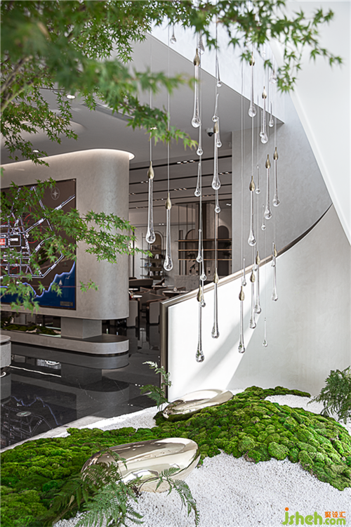 故事的起点,从延续城市科技的发展轨迹和文创艺术痕迹开始。穿梭古今,游弋时空,营销中心设计以抽象“河”呼应整体设计概念。