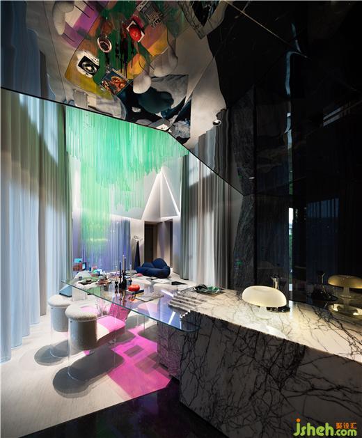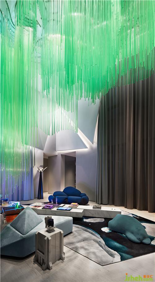 秦皇岛样板房设计师刘荣禄将冰岛从世界另一端,搬进整个居室空间,汲取冰岛极光、冰川、黑沙滩等经典又富有生命诗意的元素,融入无畏且热爱的生活主张,打造“海洋之上又见海、见极光”之感受,足不出户,就能看到世界尽头之美。