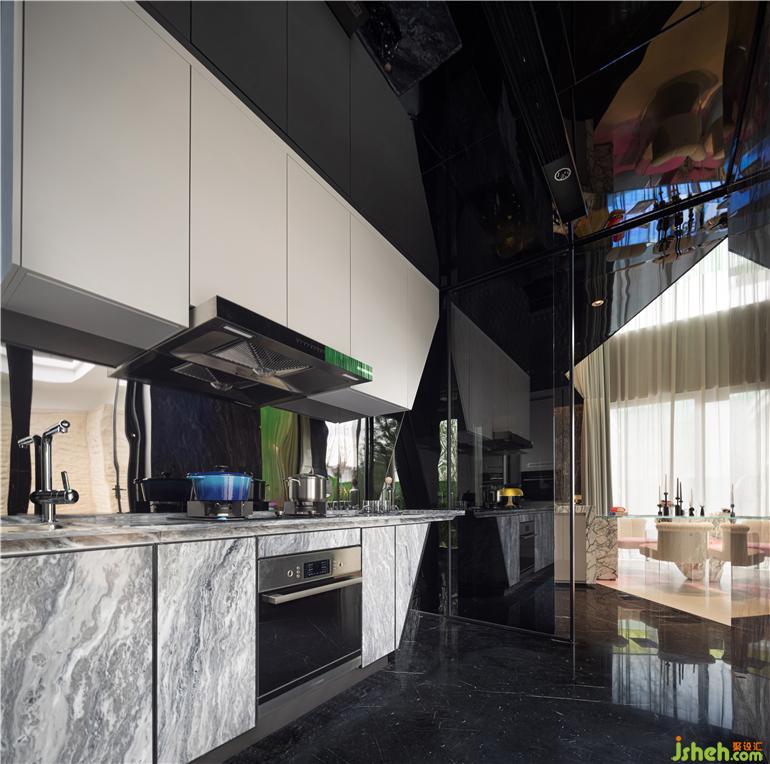 考虑到当代人们的生活环境,设计师贴心在玄关、茶几、厨房等细节上做了深度思考,兼具实用与艺术性。玄关空间,秦皇岛样板房设计除了传统的收纳空间,也会针对后疫情时代增加消杀功能;茶几岩板台面可以藏下投影仪设备,满足全家人晚饭后的浪漫光影时光,半敞开式厨房更方便家庭宴请的互动性。
