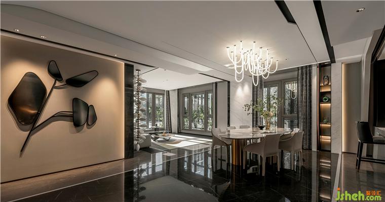 空间架构则打破传统的墙体的设计方式,改为用石材隔断分隔,北京样板间设计让空间充满连贯性、开敞性与多变性。立面白色的石材、金属线条、高级灰无疑成为这座豪宅的最佳背景色,安静有序的阐述人与空间的关系。
