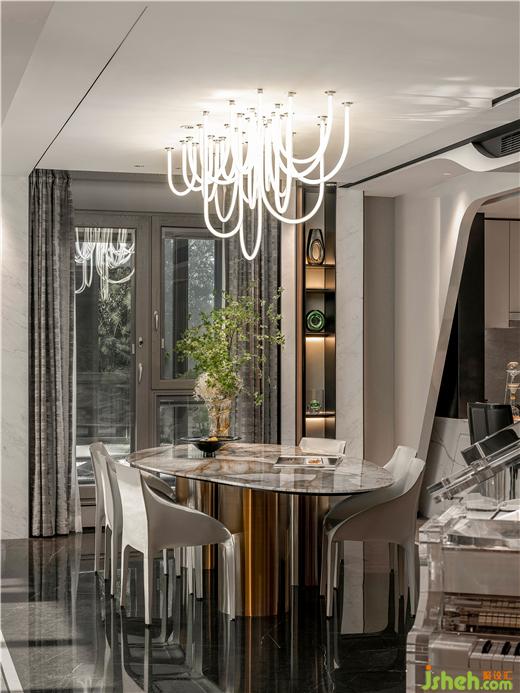 刘荣禄独创的曲面吊顶赋予了空间无尽的想象,洄游空间的设计也能增强家庭的互动,连通更多的家庭空间。雅致的大理石背景,内敛神秘的材质肌理,线条分明,闪烁着金属光泽,北京样板间设计充满细节和层次感,成为一室引人瞩目的焦点,雅居豪宅,犒赏理想人生。