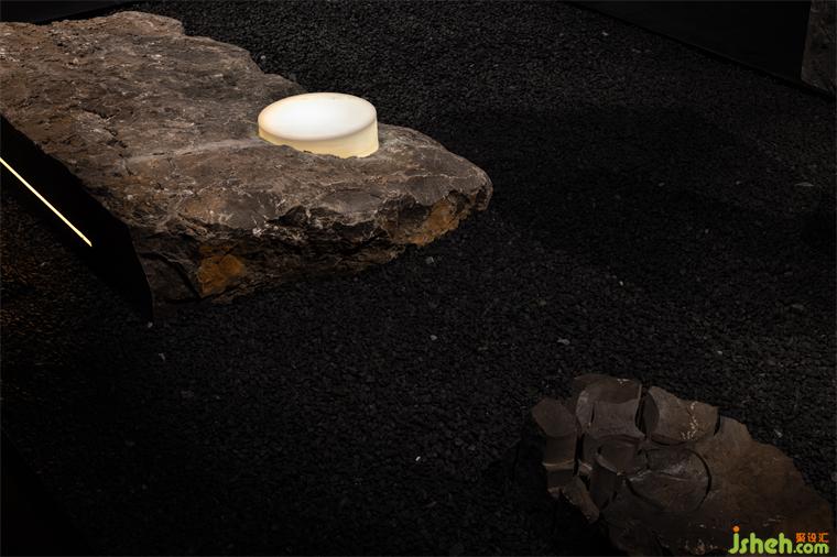 大理石嵌灯,探索外方内圆精神世界;阴刻图案,是天圆地方的精神内核;拉槽线性灯带,是理性之光的诗意表达;天然石面表达自然剥落的肌理感,艺术家用石头作为自然的载体通过解构建筑语言,将中国传统文化意象转换为当代艺术语汇。