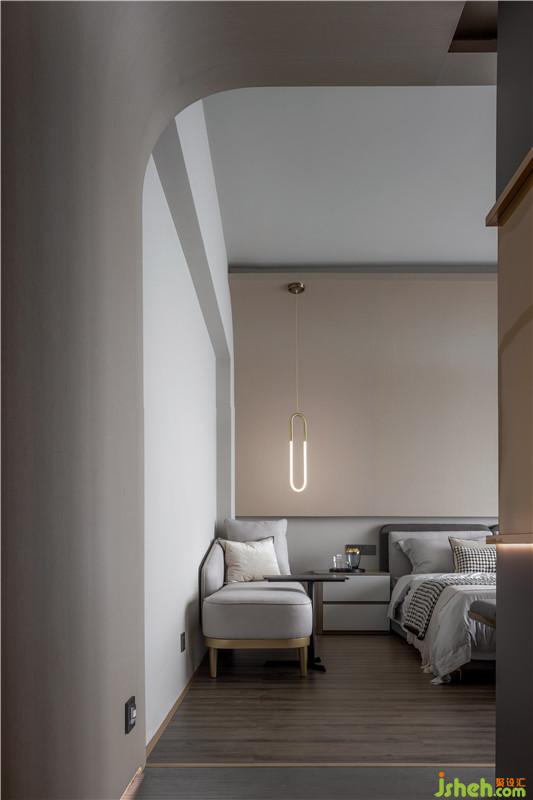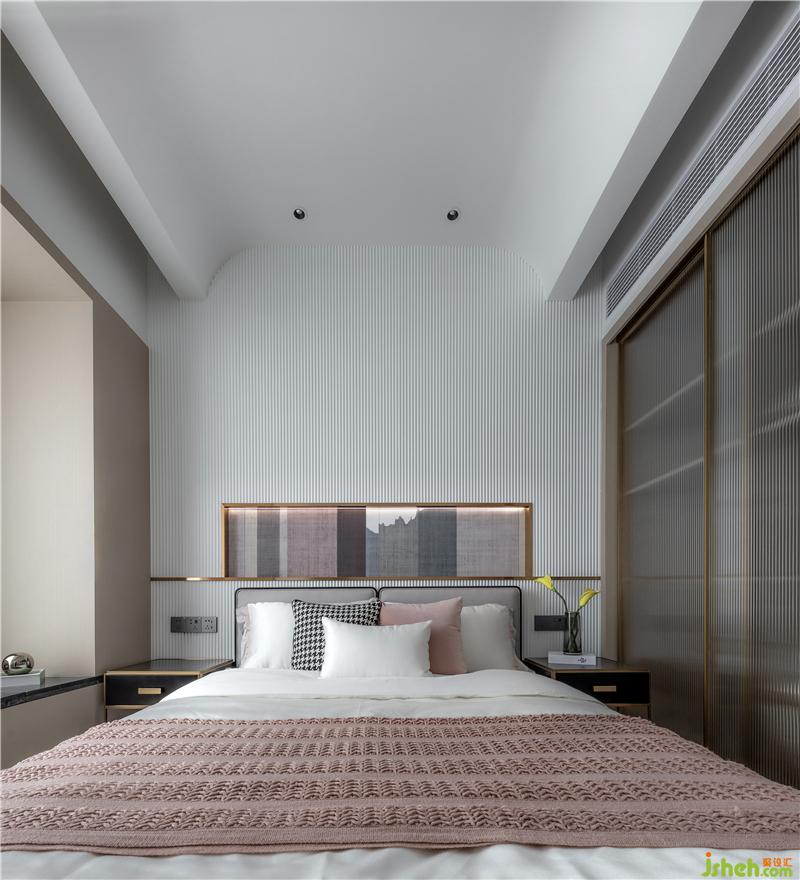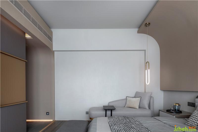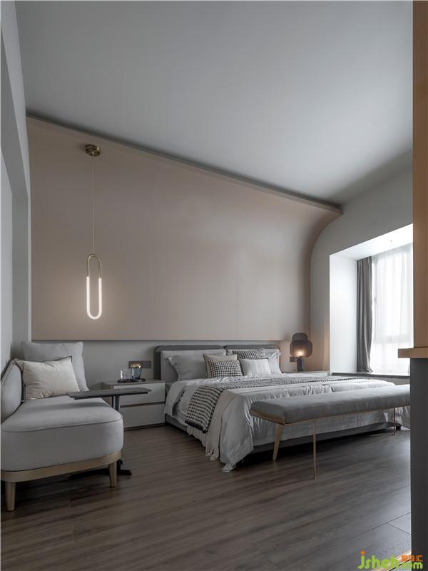 独特的主卧户型吊顶,如海浪一般,带来不一样的视觉体验。温润的配色,恰到好处的灯光,弧形的角落设计,带来舒服的视觉体验。