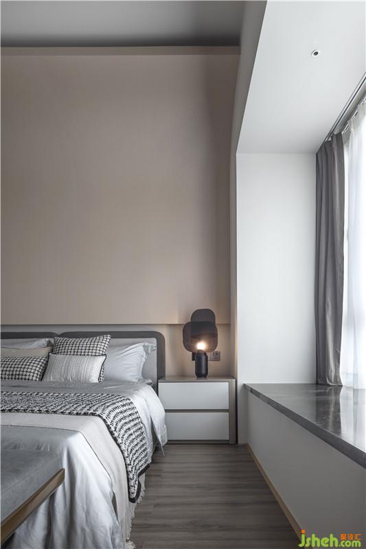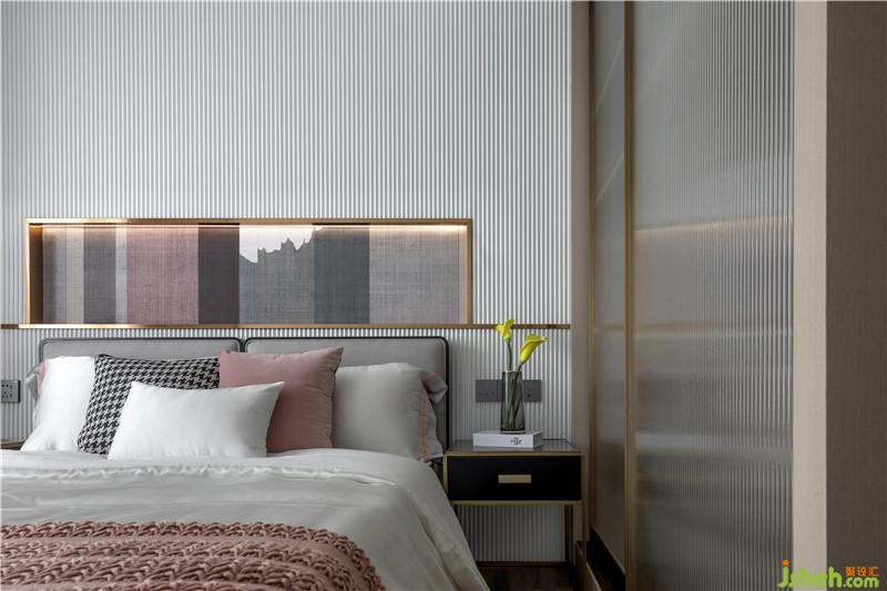 次卧的白色墙体在光线下呈现出柔和的肌理,室内设计师搭配金属线条框的装饰画,氛围优雅轻松。经典的直线分割设计手法、温润的配色搭配优雅、多元变奏的几何线条碰撞相映。