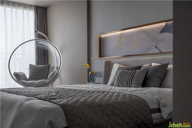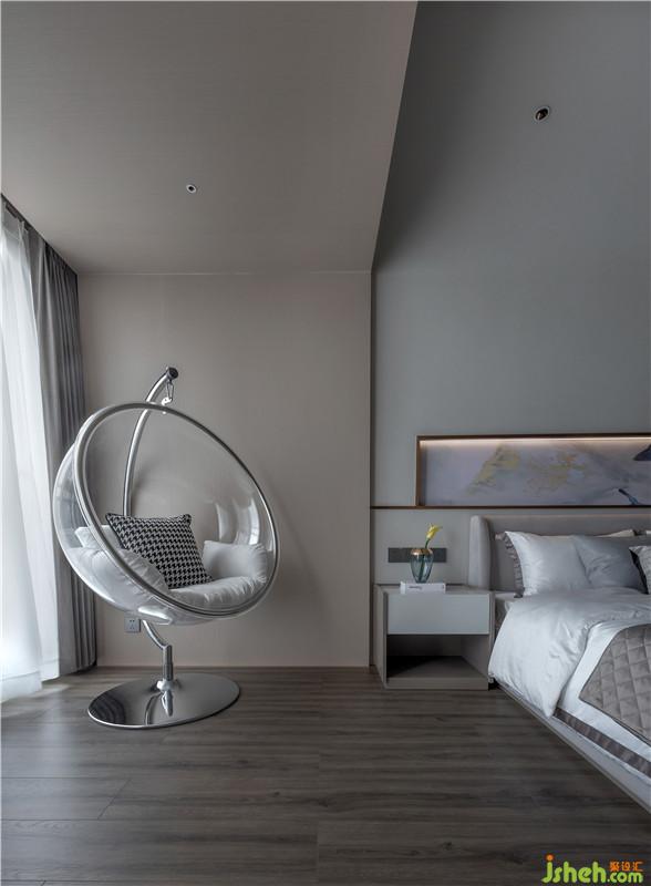 落地窗带来舒服的光线,微风徐徐,荡着吊椅,看着窗外的美好,艺术与设计在设计师的笔下融入空间内饰细节。