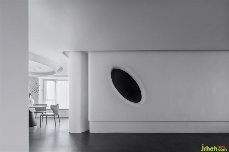 弧形的空间围合虚化掉了空间的紧张感
