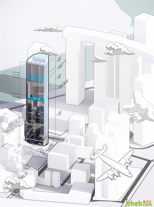 延续、召唤、幻象、消融、悬浮,作为体验的逻辑架构,震撼的景观视野,客、卧分离,创造更舒展的社交休闲空间和更立体的居室体验,高空酒店设计以云端墅居表达品牌的主张:自由、浪漫、大胆!