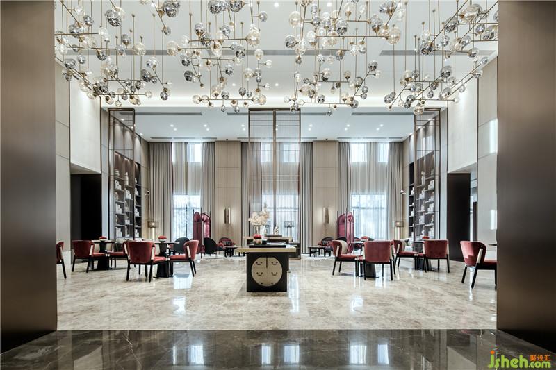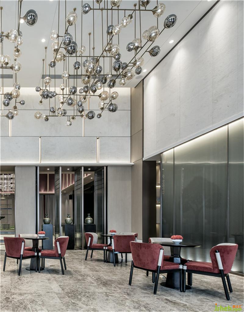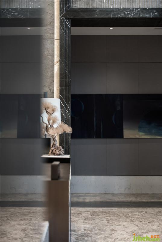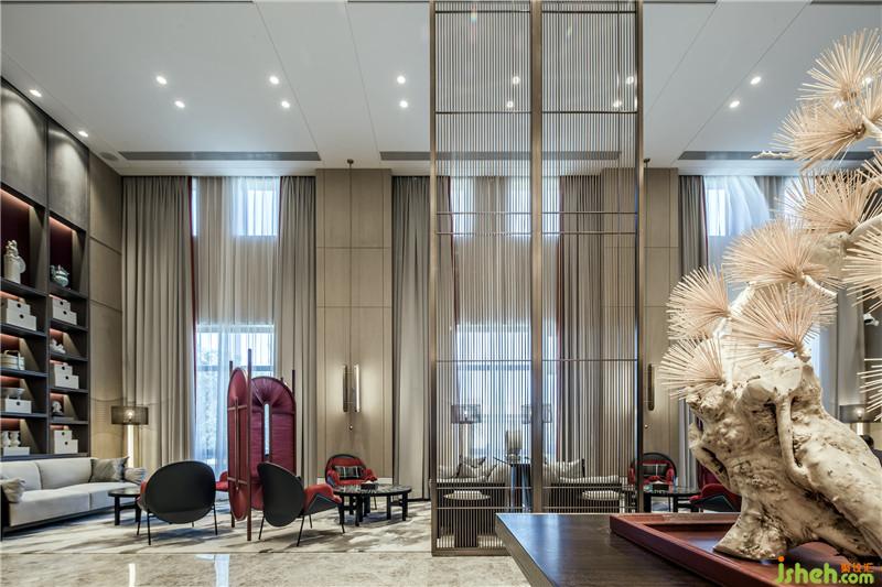 云深秋山落西风,缝是雾色半朦胧,空间整体,自然的质感与艺术的精奢气质融为一体,奠定了整个空间的基调。棕色如水般流泻,天花纵向线条向上延展,像山脉的纹理铺展开来,木栅排布出空间的疏密节奏,大气俨然中,亦不失自然朴质的美学风韵。