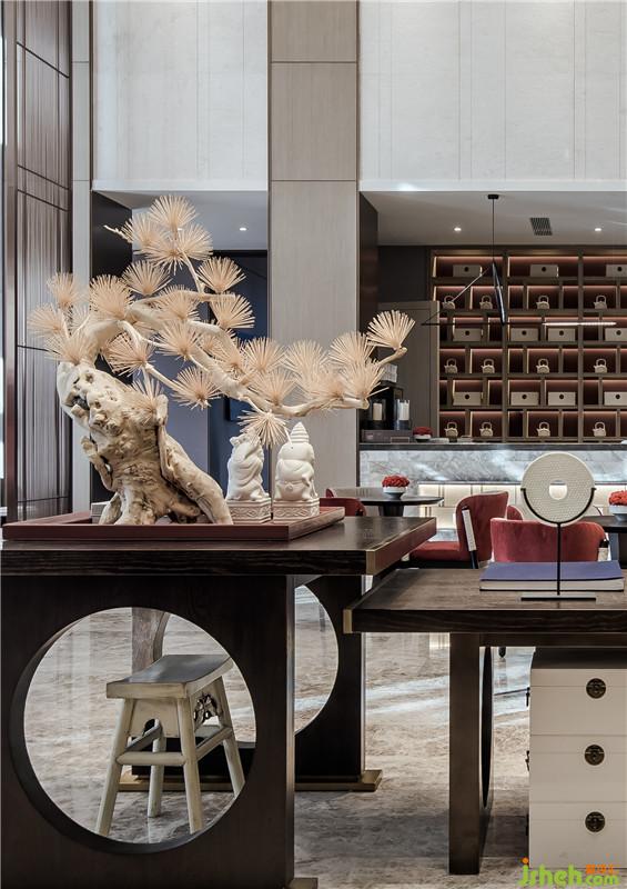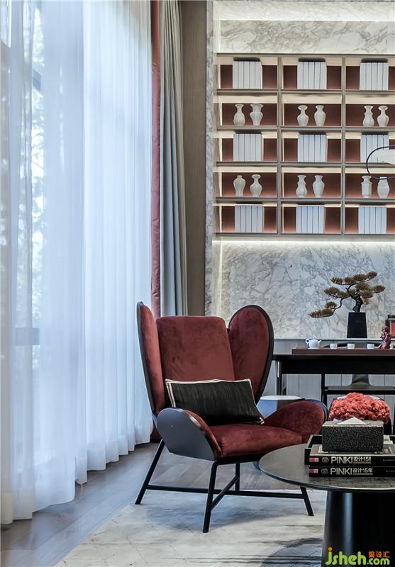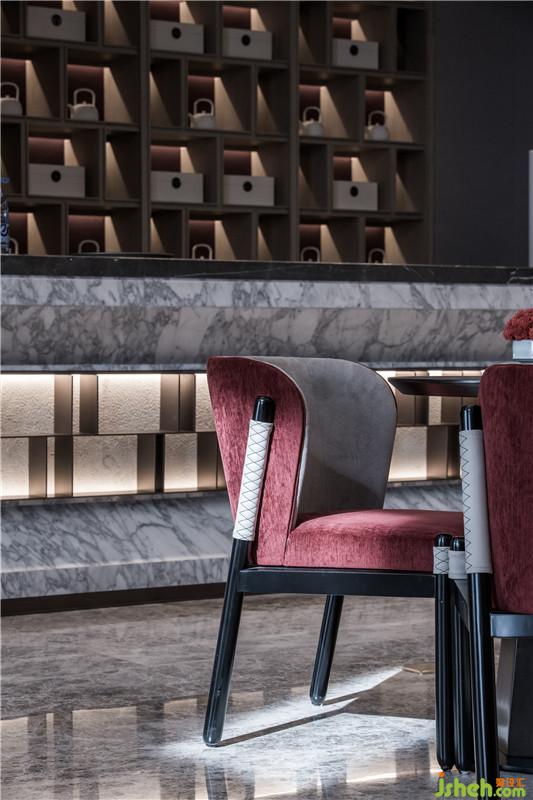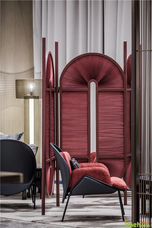 低饱和度暖色调,米黄色调大厅中偶尔点缀一抹硬性的红调屏风,大红的座椅软包热烈,其红如火,似在远处看见的盛开着的荼蘼,也似晚霞绯烟被朦胧了的天际,在余晖中凸显最后的生命力。所谓艺术就是巨大的晚霞,是一个时代所有美好事物的燔祭。
