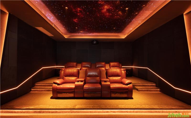 最重要的影音体验室,装修设计采用简单的墙面装饰,大气,突出产品效果,将视线重点落于正前方的大屏幕上,黑暗的环境里全身心体验超炫影音感受。配合可控的智能灯光,调节不同效果,是空间充满韵律,带入节奏感。