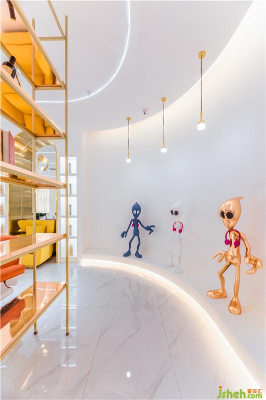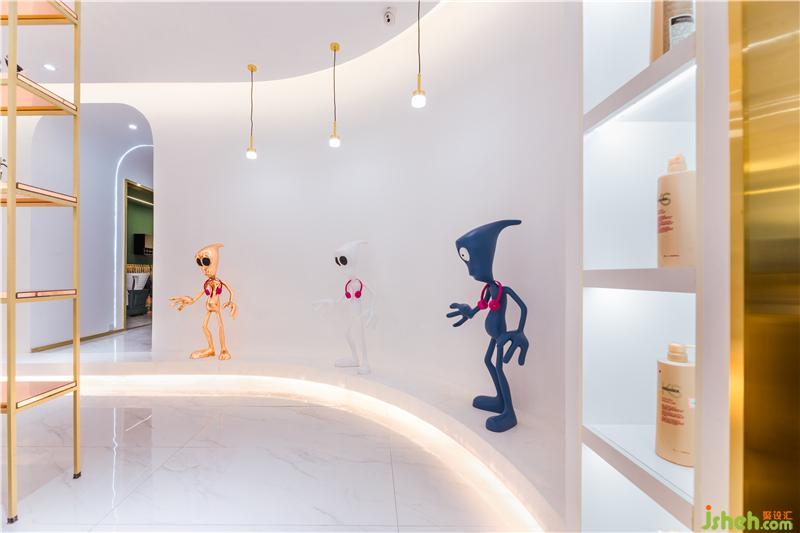 点、线、面、体的变化,使空间收放自如,而对材质上的把控,使整个氛围简洁时尚。玻璃、不锈钢、石材……不同的材质在空间中综合运用,不同的肌理形成有节奏的韵律感,独特的装修设计。运用剪刀手的模型,点亮整个主题,一双手,一把剪刀,以爱为题。