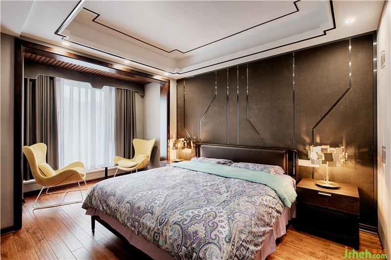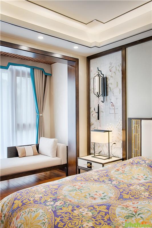 在卧室空间中,别墅装饰采用成稳的色调打造,营造放松,温馨舒适感,微风徐来,不喧不燥。趁着微光,放松自己,做个桃源美梦。