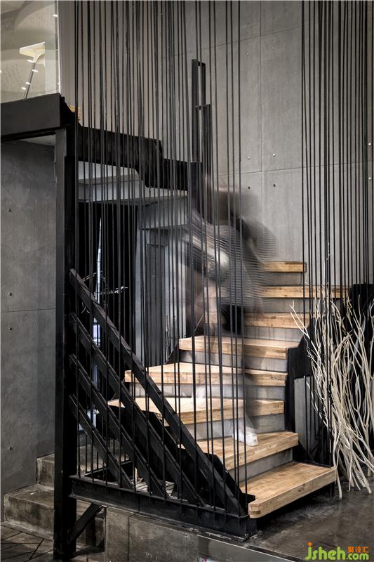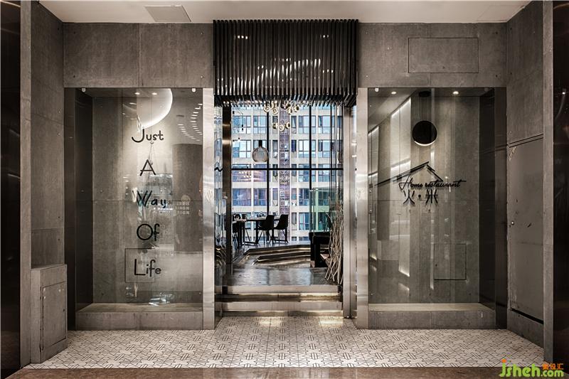 餐厅设计中现代感材质的玻璃与火米餐厅的复古格调融合,几何图形地砖铺成的过道,复古地坪漆环绕的台阶,与复古墙砖温文的质感一道,衬托出西餐厅独特的格调。