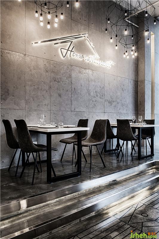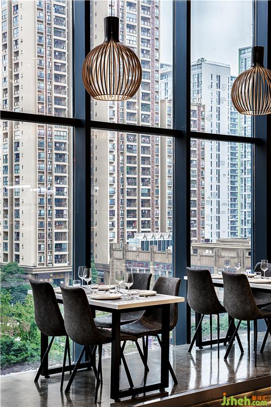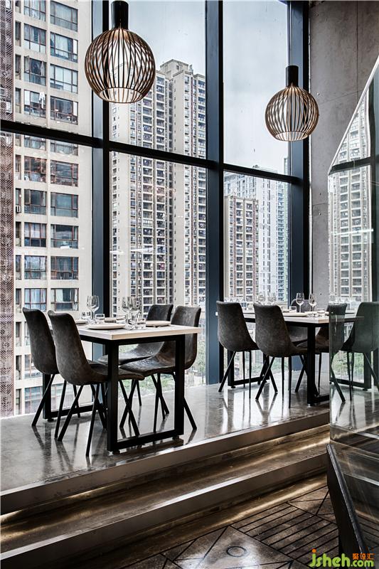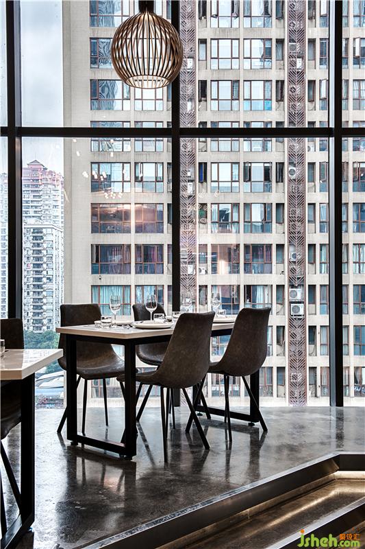 设计师非常注重空间环境的打造,用复古地坪漆和吊灯完成环境渲染,让色泽的冲撞度更高,形成火米西餐厅独特的韵味,从而升华环境品质和空间格调。