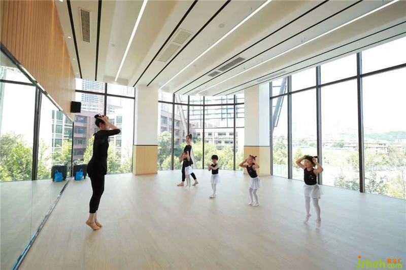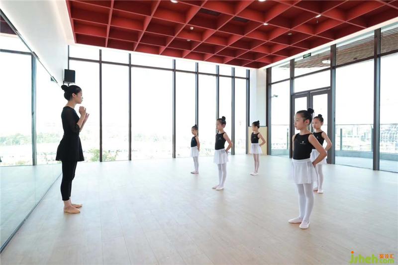 舞蹈室公区主要分为三个功能片区:可以家长们可以愉快沟通交流的前厅区、可以休息游走欣赏室外风光的走廊区、可以灵活穿梭学习的舞蹈教室区。