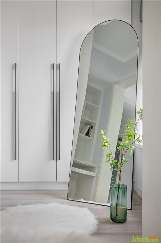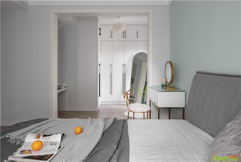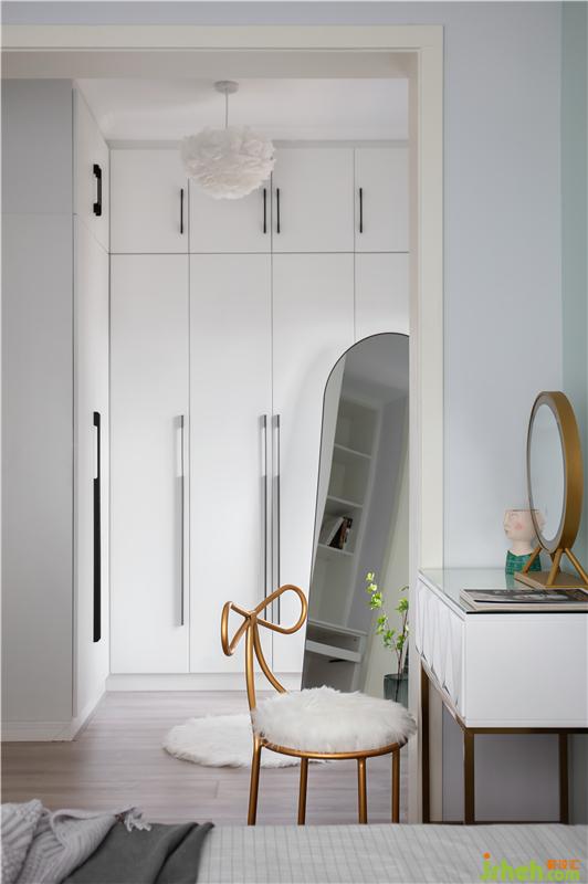 最特别的是,设计师通过二合一的方式,把两间独立的卧室合并在一起,装修设计出独立的衣帽间,即保留男主人办公的要求,又满足女主人衣帽间的想法。