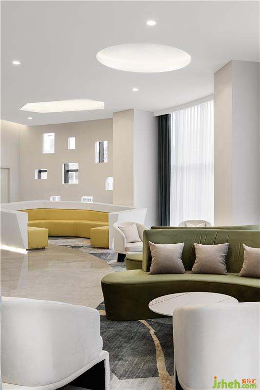 以患者的生活为中心的光环境,营造出安心、高情感、便捷的氛围。曲折蜿蜒的地砖拼贴,对称线性光源,给空间增添了几分生动柔美感;点缀众多异形光源,视线所及处舒朗开阔,将医疗空间舒缓、安定的氛围淋漓展现。
