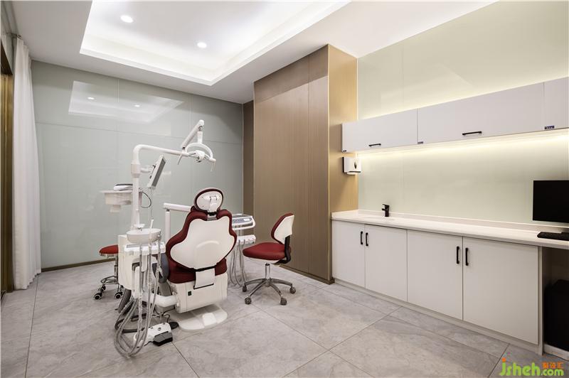 诊室空间内人的活动更为单一,因此按几种基本模式布置设施之外,选择了淡雅偏暖的色调,但坐椅却添加了皮质与红色元素,轻松打破了白色所带来的冰凉感,整个房间多了几分“温度”能让患者的紧张情绪得到很好的安抚。灯光相比大厅来说则更加柔和,但又不会影响医生观察。