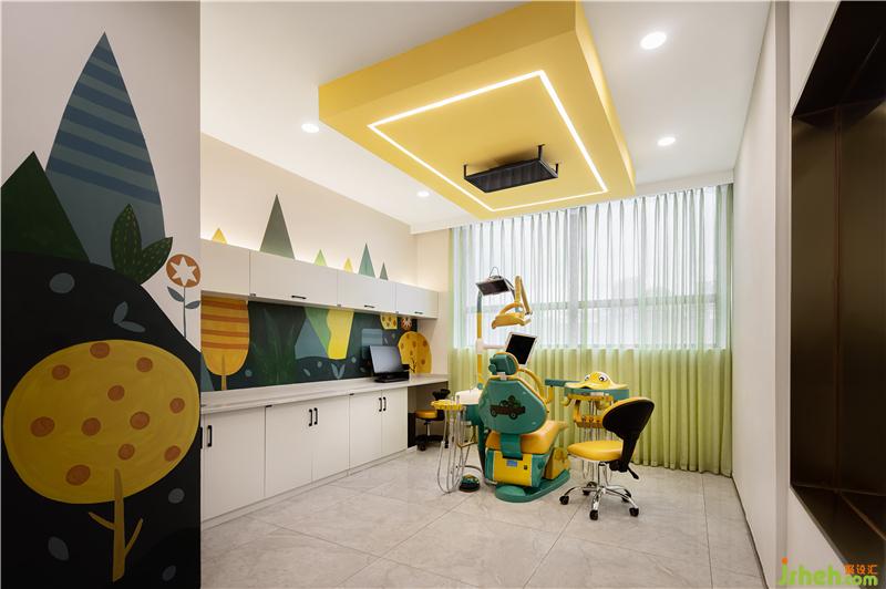 儿童区域考虑到在医疗空间所处的必要性,设计依据孩童对动画人物和动画世界天生喜好,在场景中融入动漫、童话色彩不仅能吸引小病人,还可以分散他们的注意力从而忘记对治疗的恐惧。