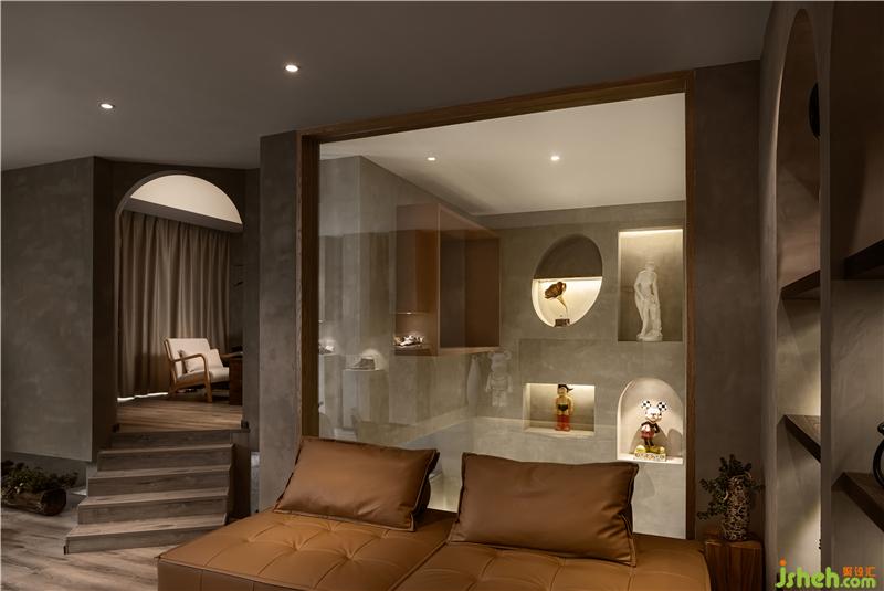 三楼VIP包房区域,连接着二层下沉景观池,向上架空半米所生成的独立空间。