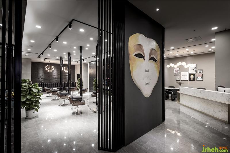 本案位于雾都重庆,新新人类魔幻文化继承者之一的内陆山水城。独有的豪爽火辣与脸谱文化完美融合。店铺设计结合发廊的功能、属性、消费人群,将空间分为玄关(前台)、剪发、VIP、洗发、烫染、休息区等区域。以不拘于生活的豪放气质,敢于造型夸张、装饰新颖的设计手法,打造时尚、明朗、LOFT工业风格,糅合多维情趣,炮制年轻消费为主体的消费场景。将色彩、金属、几何、极具个性的汇集一派,给消费者带来不一样的体验,同时充分体现了脸谱的离形与取形。