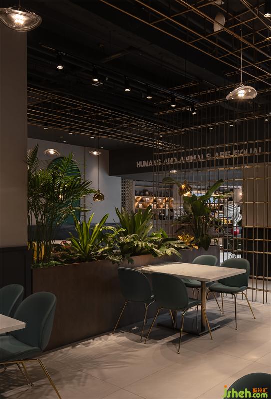 就餐区像缎带一般轻柔分界,延伸至下个区域,