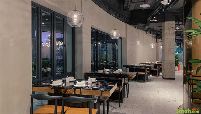 在原空间基础上进行迭代,现代工业风格墙面,最大限度引入自然景观,构建树荫下的现代都市餐饮馆,引领顾客在自然中偶遇美食。