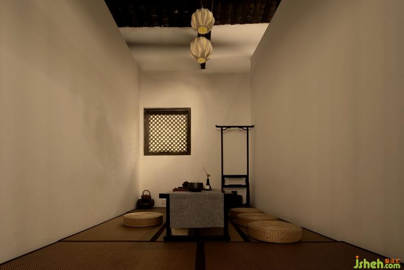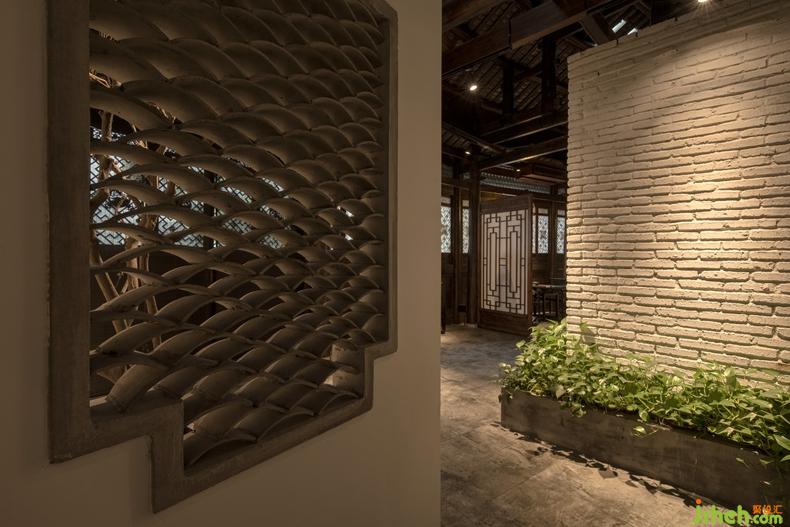 青砖、灰瓦、古木的材质搭配,将自然材质的现代触感表达空间质感,也让顾客有了穿越历史时空的体验。木质间隔门让空间得到充分的间隔与利用,同时划分各种功能分区。徐徐进入,装修设计有种远离闹市的安逸感,喝茶、插花、学习古时文人雅事,修身养德,是一门重要的课程。