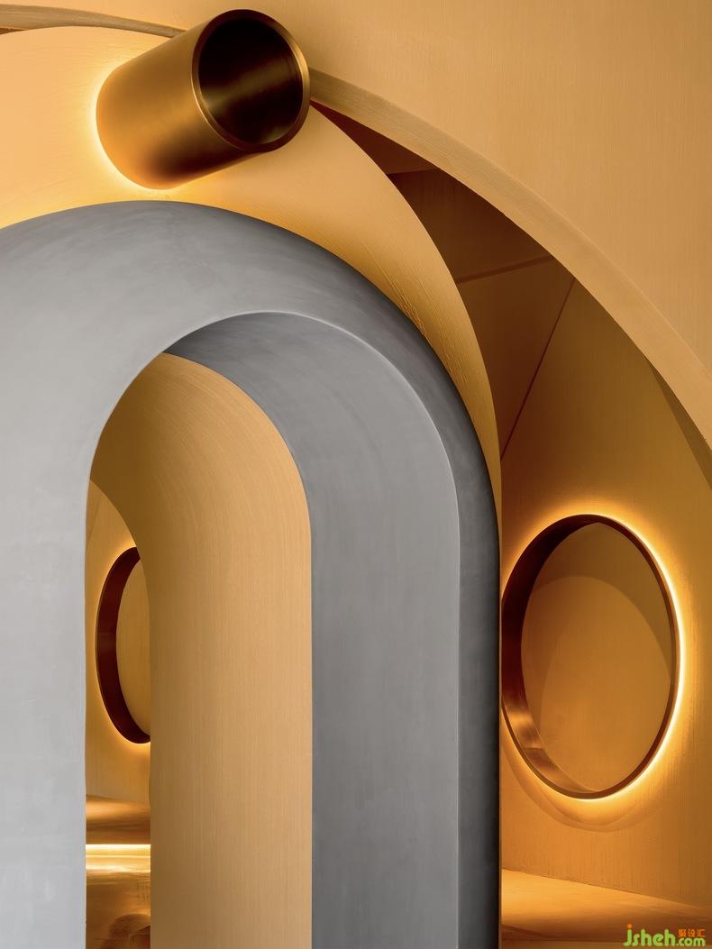 孟菲斯最具代表性的几何纹理和自由式构图,贯穿项目设计的各个维度。但在空间材质和色彩的选择上设计师有所扬弃,希望以更为质感的呈现和更可续的理念超越孟菲斯极度重视视觉效果的局限性。