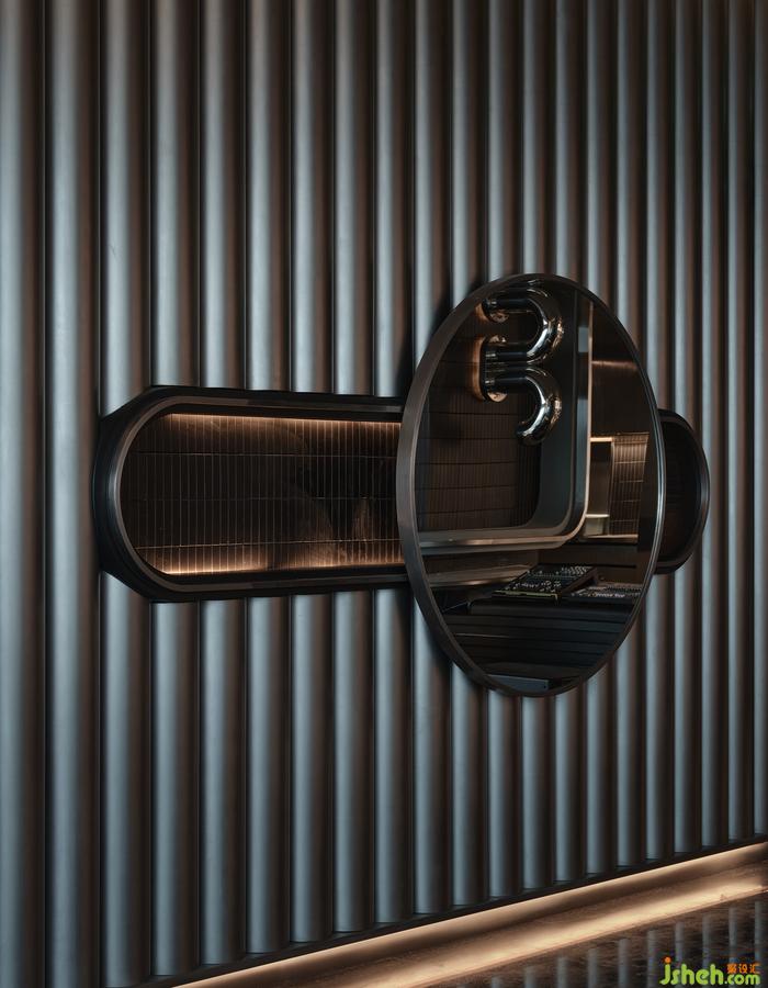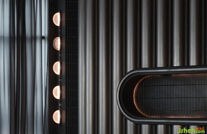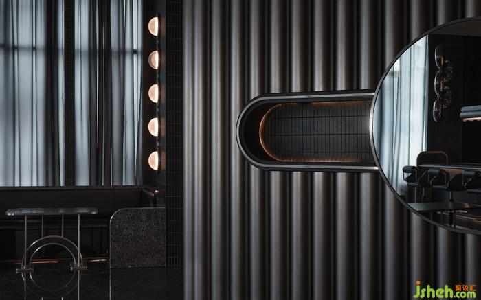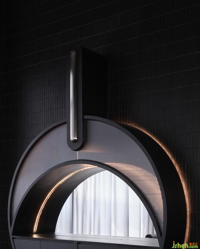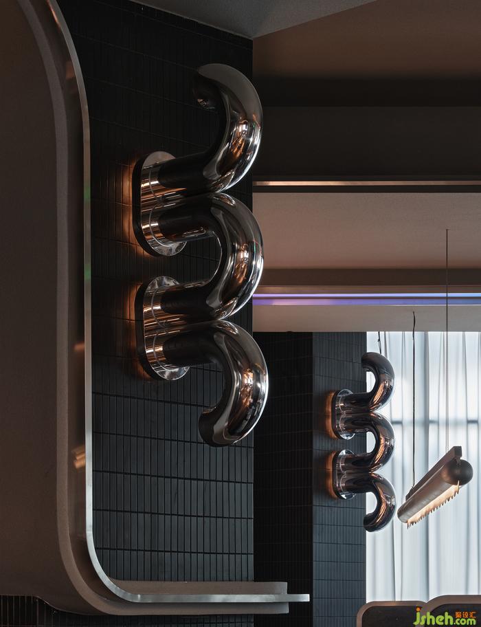 “如果你能改变人们观看的方式,就可能改变他们思考的方式。”连接垂直动线的玄关,其布景由瓷砖、涂料、不锈钢以最基础的状态形成组合,非传统的工业材料转译而成视觉符号,虽无刻意却似魔法,餐厅设计承载功能之外的智性与美感的双重愉悦,延展撩人意涵的冷幽默。