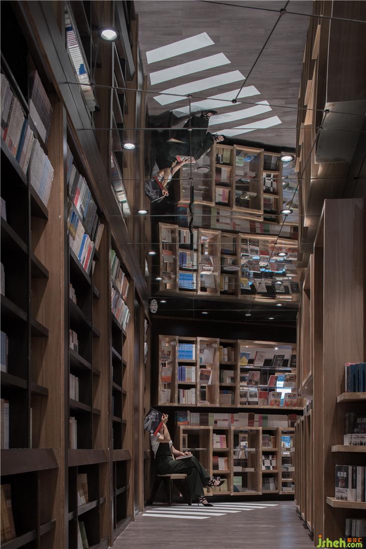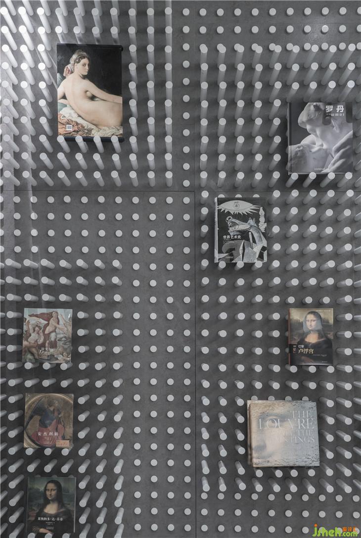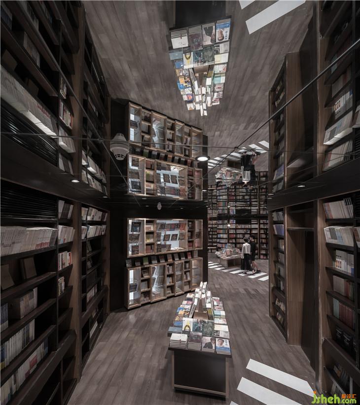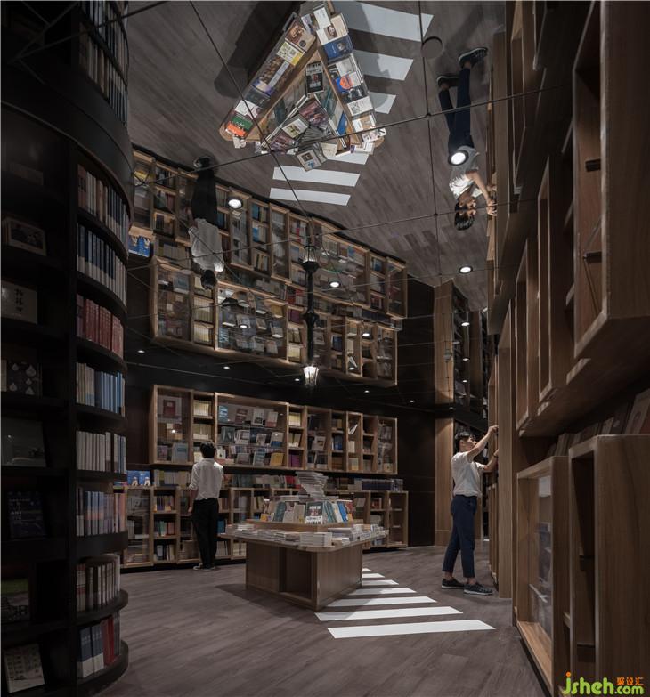 穿越这安静的图书公园便来到了书籍的天空之城,一条蜿蜒的路径贯穿4幢由书架构筑成如建筑般的书架,让读者体验穿越在真正的书的城池,在路径上看在这里每一间房子外的墙都是书架构成,而且留有大面积的可透视窗口,可以看见“房子”内的情景,但从房子内部看则是一个个文化艺术主题和相应的书籍馆。4间建筑内面积有大有小,小型的犹如一个安静的书房,大的可以容纳小型的读书会。这里用书记构建城市的模样,与外界喧嚣的街区不同,这里只有安静与作者之间的隔空交流与感悟的精神世界。书架之间的路径宽窄渐变,曲径优折间可见地面标示的斑马路线,这里,恍惚间像是走在上海的百年街道感受浪漫与上海的情怀。室内设计师