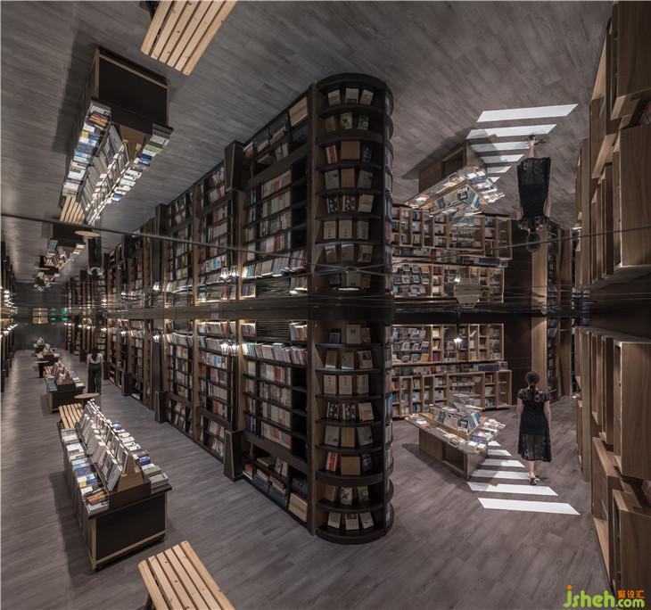 接承这个空间的是一个休闲阅读的长廊,这里有一排长长的公园椅子,书架设在两箱,书墙每隔一段就会有一盏路灯。这里不仅是读书长廊,更是一个室内读书公园。慢慢行走在书的世界,累了,坐在路灯下的椅子上,静静安放精神在一本心爱的书上,正是这个空间想给予读者的阅读环境。室内设计师