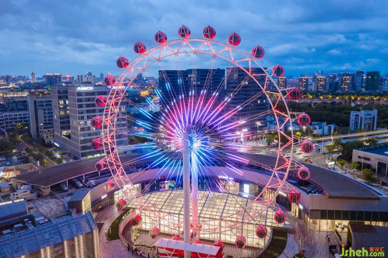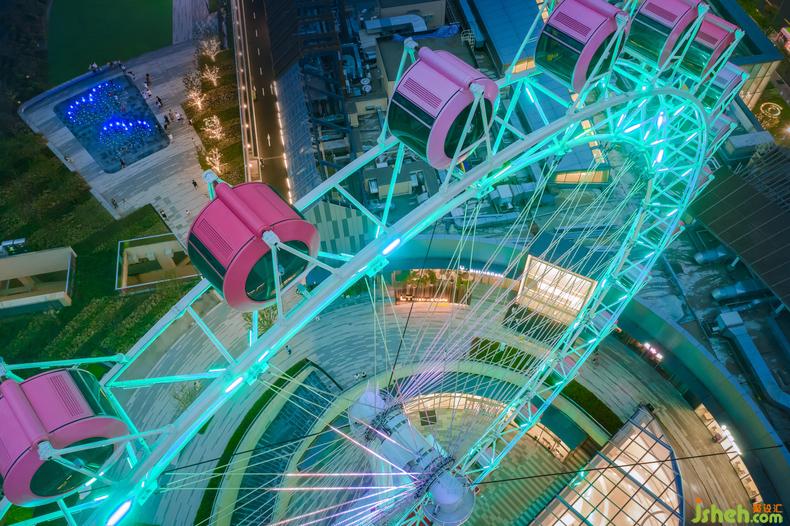 除了2、3层的儿童主题公区改造,设计师还应甲方的需求将室外露台区打造成了整个商场的最浪漫打卡地点。室内设计师目标人群从低龄儿童层,拓展到了年轻群体,粉红摩天轮为空间中亟待发生的浪漫故事作了铺垫