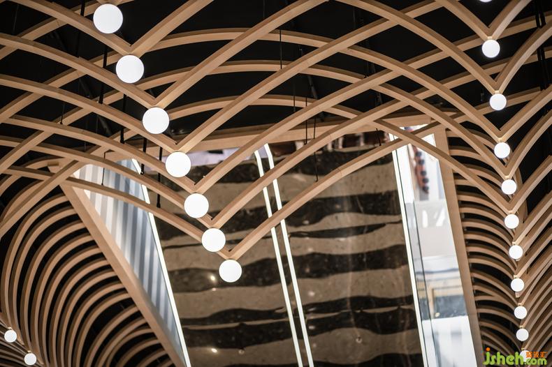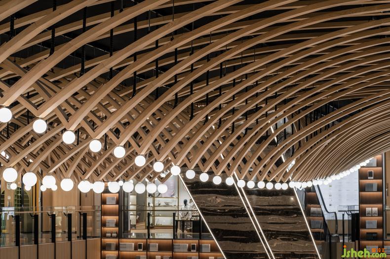 阵列式的拱状吊顶装饰,如同自然生长的枝桠,为整个空间铺陈悠闲惬意的氛围质地。规律排列的布局又使得空间如同艺术馆般,极具视觉张力与观赏性。