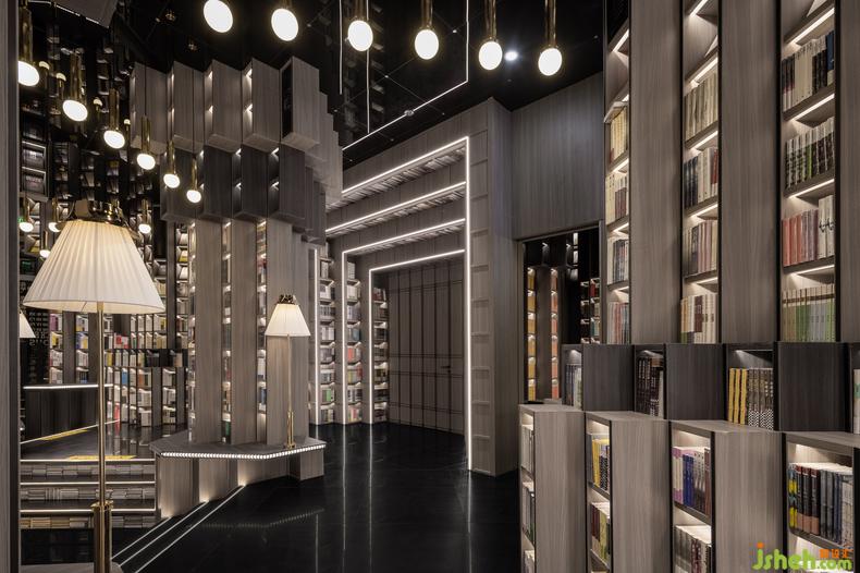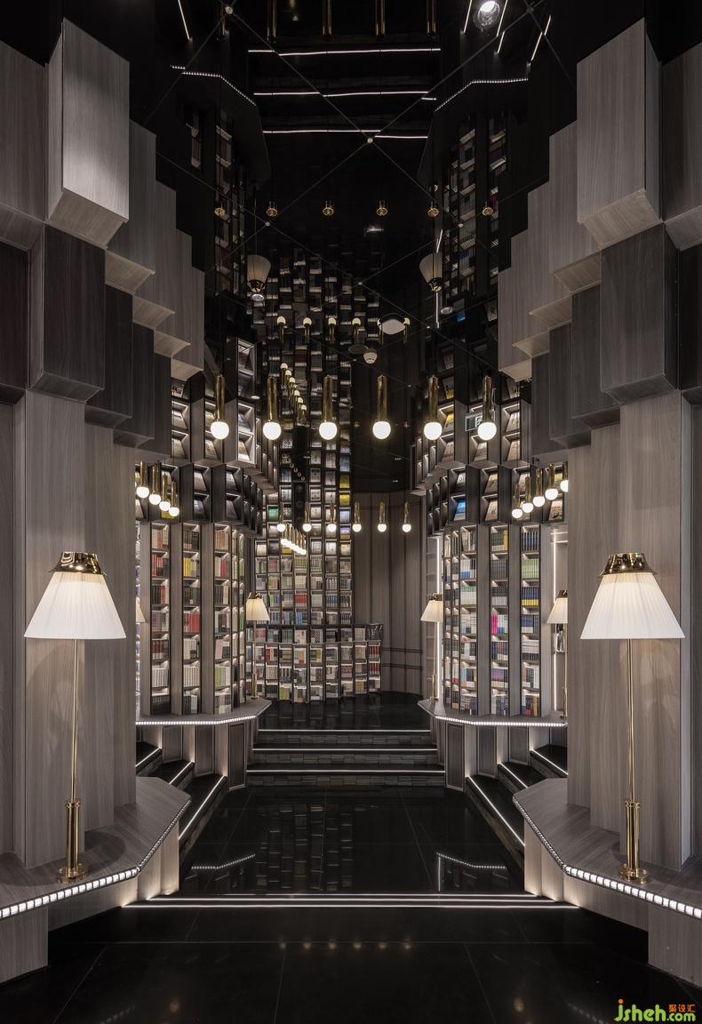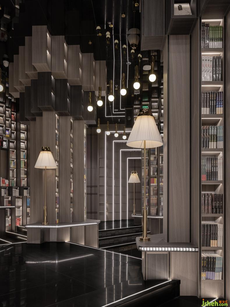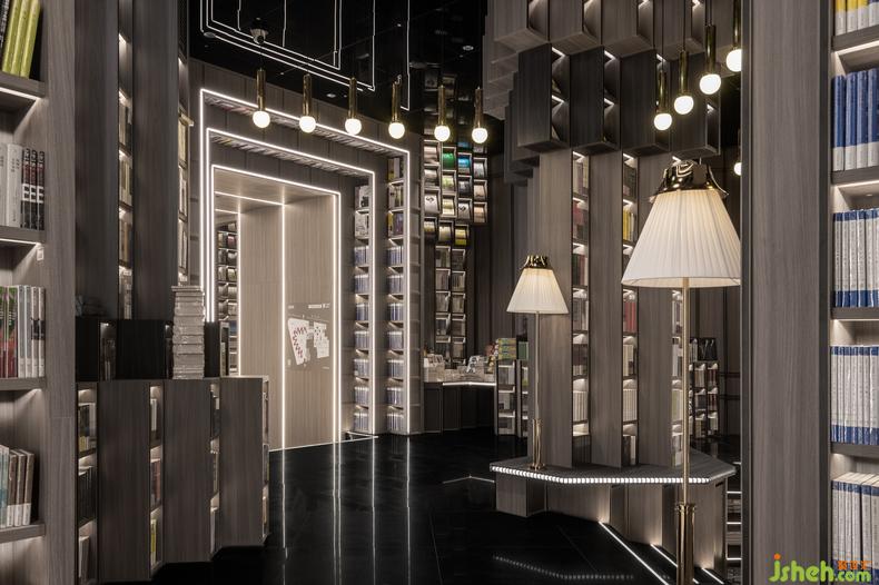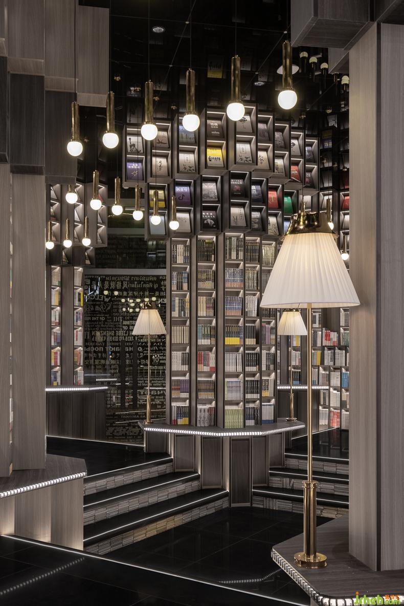 叠加的门洞造型和富有层次感的地面动线言明了知识殿堂丰富多彩,深邃宽广的精神内核。简洁的灯具散发出柔和的光线烘托整个场所的温暖氛围。充满悬浮感的摆台丰满了超现实主义设计的骨肉,带给读者一些奇幻的想象与感受。