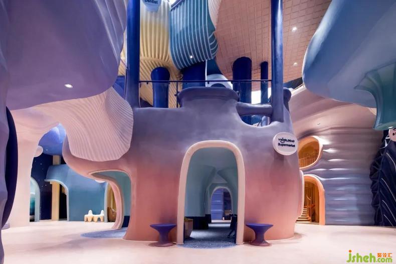 应原创亲子文化娱乐品牌“优我宝”的委托,唯想国际将一座老旧厂房焕新改造为大型儿童艺术美学乐园。厂房优越的室内层高与新品牌的初生引发了设计师的想象,一片无限闪动的蓝色海洋从潜意识里浮现。