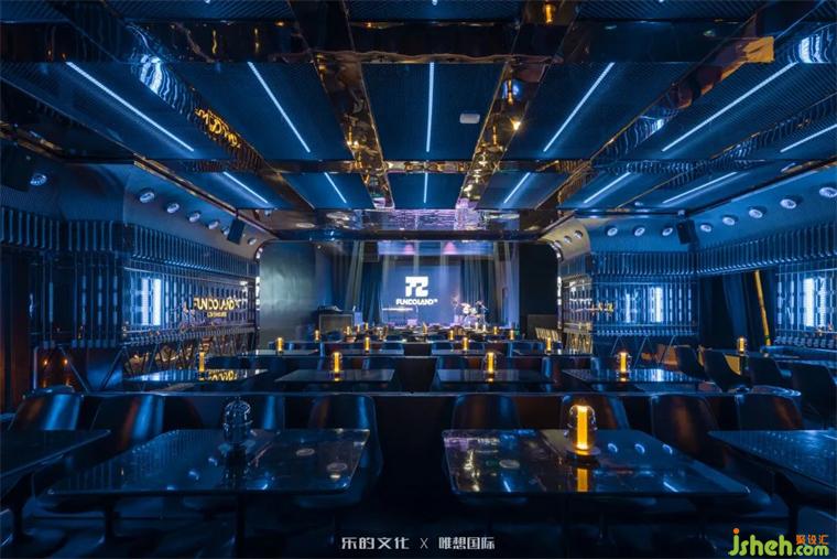 Livehouse以金属墙面栅格提升空间的复古感与精致度,装修设计暗红色沙发卡座和大理石纹吧桌为空间增添品质感,卡座围放在舞台两侧,冷蓝色灯带点缀般勾勒出空间骨架,渲染几分先锋迷幻,装修设计整体营造了沉浸式观赏的演出氛围。