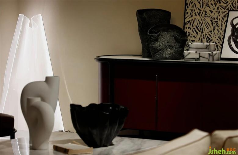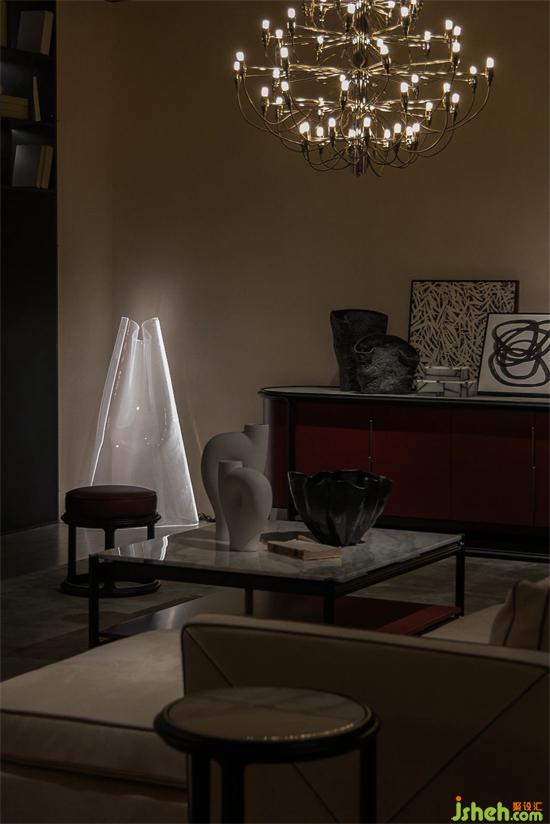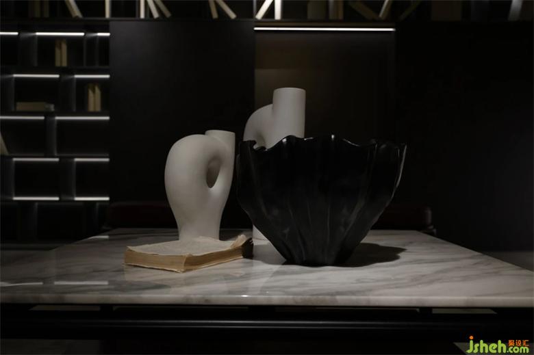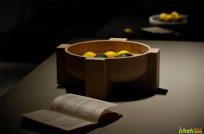 一物一品,空间中的软装器皿、书籍、摆件均精心挑选,洞石托盘与家具的石材相对比,我们希望家具展厅设计打造的是安静、平稳的、包容的状态。