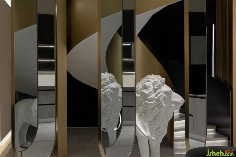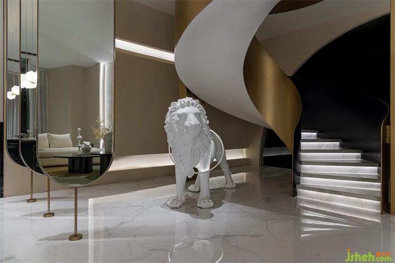 狮子落地灯成为空间旋转楼梯下的点睛之笔,艺术注于空间有了静谧、灵活的气息,与空间造型相得益彰。